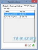 Audio Switcher cho phép thiết lập các phím nóng giúp người dùng có thể điều khiển âm thanh nhanh hơn, cho phép thực hiện chuyển đổi giữa các thiết bị chỉ trong một cú nhấp chuột.