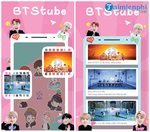 Tải BTStube cho Android - Ứng dụng theo dõi MV mới chất của nhóm BTS cho điện thoại Samsung, Oppo, HTC, Huawei, Sony, LG, Xiaomi...