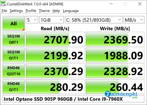 - Nhiều bài kiểm tra tốc độ: Cho phép thực hiện kiểm tra tốc độ đọc/ghi tuần tự và ngẫu nhiên.