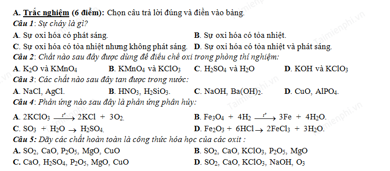 Tải đề thi học kì 2 môn Hóa học lớp 8 có đáp án