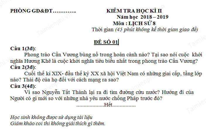 - Đề thi học kì 2 môn Lịch sử lớp 8 Đề số 3