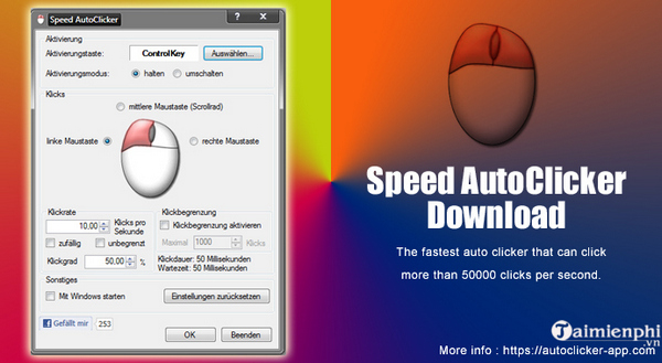 Speed Auto Clicker nổi bật với khả năng tự động nhấp chuột nhanh chóng, có thể đạt tới 5000 lần mỗi giây. Đây là một công cụ hữu ích cho những ai cần thao tác lặp lại liên tục mà không muốn tốn quá nhiều thời gian, bạn có thể điều chỉnh tốc độ hoặc đặt giới hạn số lần nhấp theo nhu cầu cá nhân.