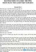 Với tư cách là Hiệu trưởng, được phát biểu trong ngày Nhà giáo Việt Nam 20/11/20… trọng đại này, tôi xin được phép trình bày vài ý kiến.