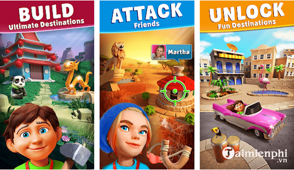 - Tấn công và đột kích bạn bè của bạn để ăn cắp đủ các chiến lợi phẩm để xây dựng các địa điểm của riêng bạn