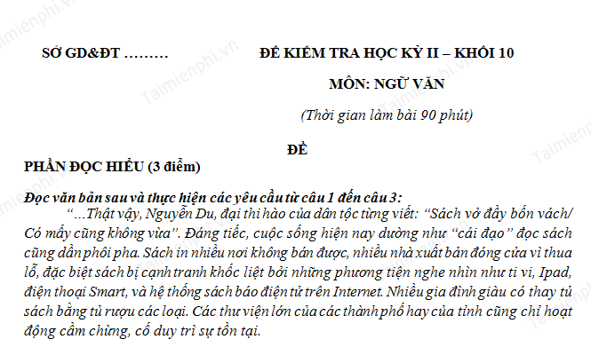 - Đề thi học kì 2 môn Ngữ văn lớp 10 Đề số 3