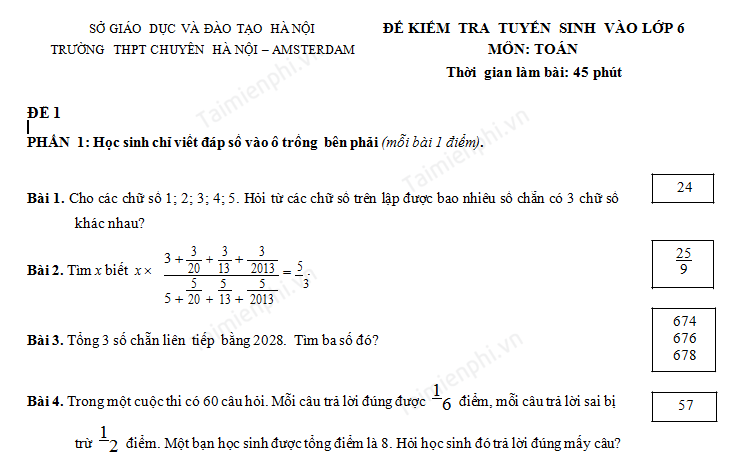 Tổng hợp Đề thi tuyển sinh vào lớp 6 Hà Nội Amsterdam