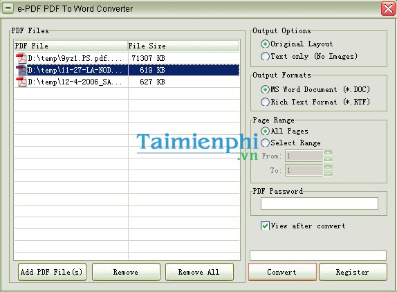 Có cùng chức năng với e PDF To Word Converter, các phần mềm Free PDF to Word Converter hay PDF to Word Converter và Quick PDF to Word có trên Taimienphi.vn cũng có tốc độ chuyển đổi và hiệu quả cao. Sử dụng e PDF To Word Converter hay một các phần mềm trên cũng đều giúp bạn hoàn thành quá trình chuyển đổi file pdf sang word nhanh chóng và tiện lợi.