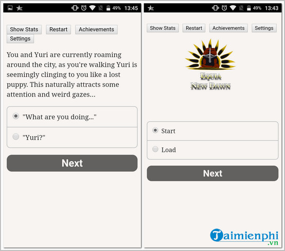 Game nhập vai game kể chuyện là một tựa game khá mới mẻ hiện nay nhưng lại rất độc đáo và thú vị cho phép bạn trải nghiệm yếu tố khám phá và nhập vai. Theo đó, bạn sẽ được đọc truyện và dựa theo cốt truyện, lời thoại giữa các nhân vật trong chuyện để tương tác, điều khiển nhân vật và phát triển diễn biến câu chuyện. Nói cách khác thì với tựa game này, bạn sẽ cần tập trung đọc truyện, sau đó bạn chính là người quyết định diễn biến tiếp theo của truyện và lựa chọn cái kết cho câu chuyện. Cũng chính vì lối chơi khá đơn giản nhưng vô cùng cuốn hút này mà các tựa game nhập game kể chuyện hiện nay được phát hành rất nhiều cho thiết bị di động và hiện đã có những game dành cho smartphone Android. Nếu bạn muốn một game miễn phí tốt nhất cho thiết bị của bạn thì Equia chính là một lựa chọn khôn ngoan. Để hiểu hơn về game Equia, taimienphi.vn mời bạn tham khảo những chia sẻ dưới đây.