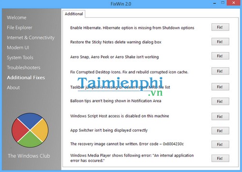 - Tải và cài đặt FixWin: Bạn có thể tải FixWin miễn phí tại link dưới đây từ taimienphi.vn. Sau khi tải về, chỉ cần mở file và cài đặt vào máy tính.