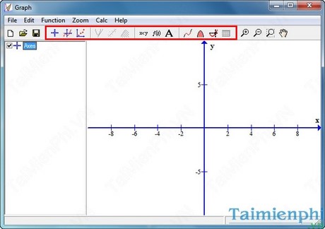 Bước 2: Khởi động phần mềm lên có giao diện như hình dưới, phía bên trên cung cấp các công cụ giúp bạn vẽ đồ thị