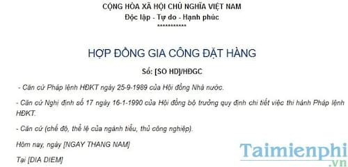 Download Hợp đồng gia công đặt hàng trong nước - Phần mềm Mẫu hợp đồng gia công hàng hóa