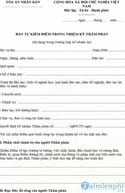 Mẫu bản kiểm điểm cho thẩm phán được ban hành kèm theo quy định về trình tự, thủ tục, mẫu hồ sơ bổ nhiệm chức vụ thẩm phán. Các bạn cần nêu rõ thông tin cá nhân của mình trong bản kiểm điểm cho thẩm phán bao gồm họ tên, giới tính, ngày tháng năm sinh, quê quán, trình độ đào tạo, chuyên môn, chức vụ hiện nay. Các nội dung cần kiểm điểm bao gồm phẩm chất chính trị, đạo đức lới sống, kết quả thực hiện công việc, các khen thưởng, kỷ luật cũng như hướng phấn đấu trong tương lai.