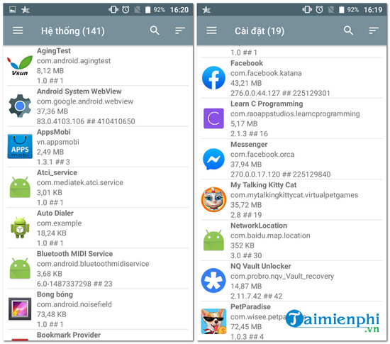 - Tìm kiếm và hiển thị toàn bộ ứng dụng hệ thống và ứng dụng tải về từ Play Store trên thiết bị.