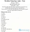 Trong Từ điển toán Anh Việt bạn sẽ bắt gặp những từ ngữ Toán học quen thuộc như phép cộng, hàm số, số thập phân, phân số, đồ thị, thuật toán, toán ma thuật.... Từ điển tích hợp khoảng 17000 từ được chọn lọc và biên soạn bởi những tác giả nổi tiếng, giúp bạn đối chiếu thuật ngữ Toán học trong hai ngôn ngữ Anh - Việt.