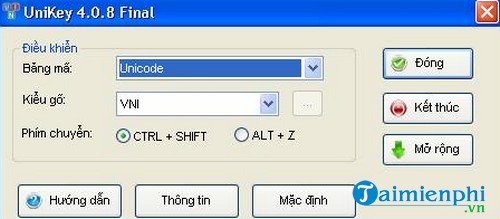 UniKey 4.0.8 hỗ trợ gõ tiếng Việt